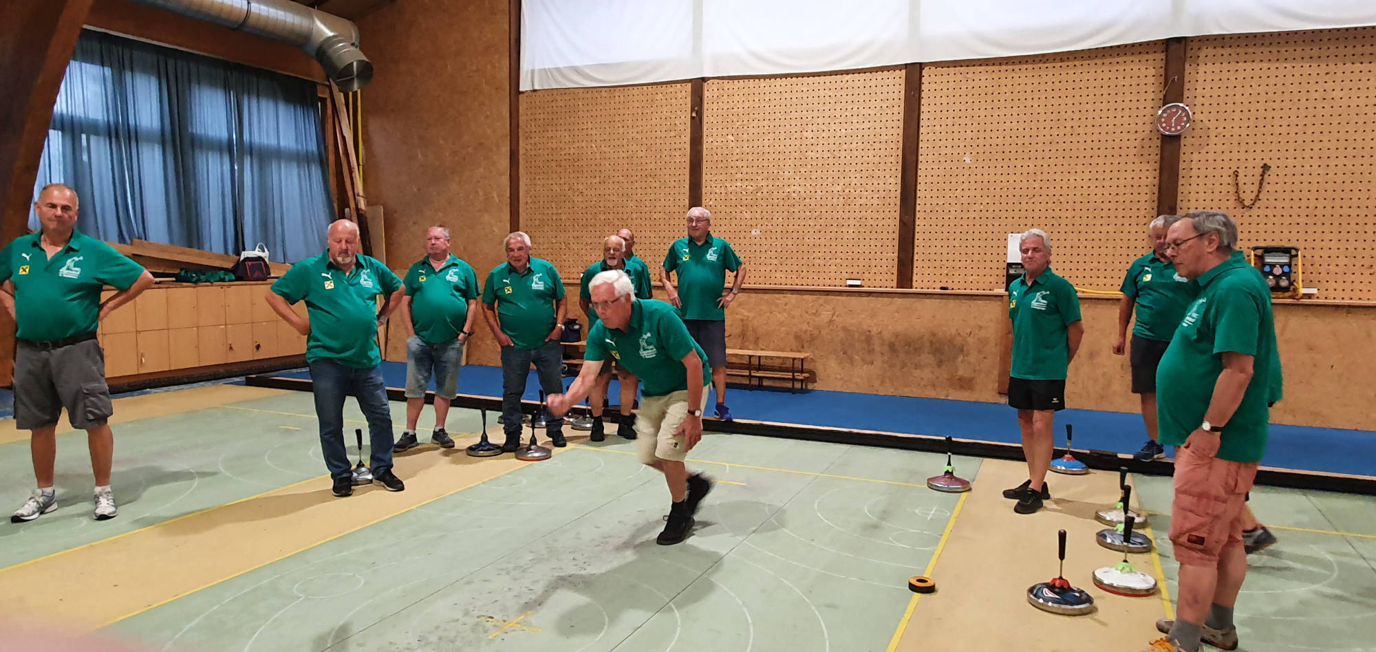 1. Stockschießen mit neuen Trainingsleiberl